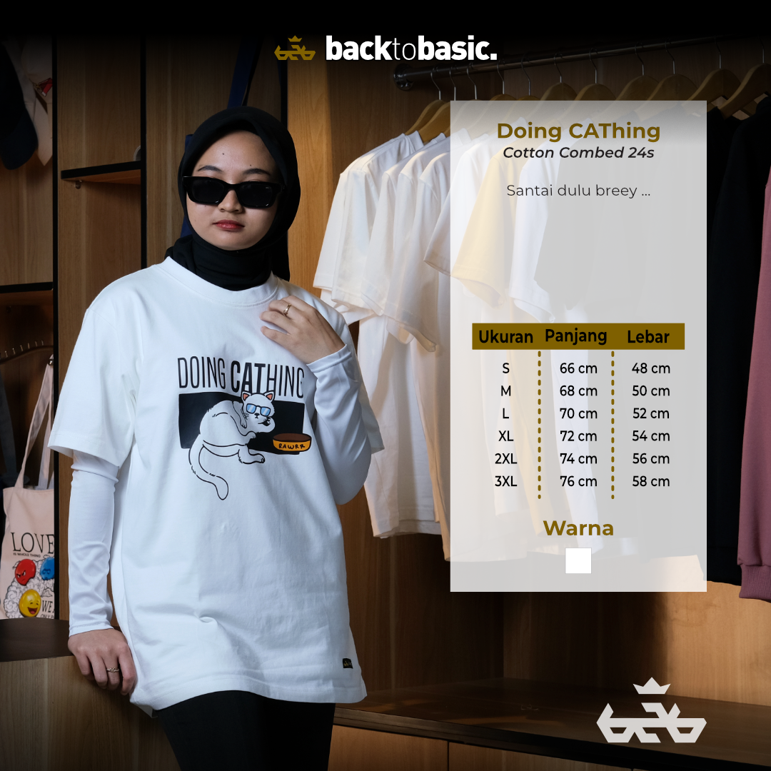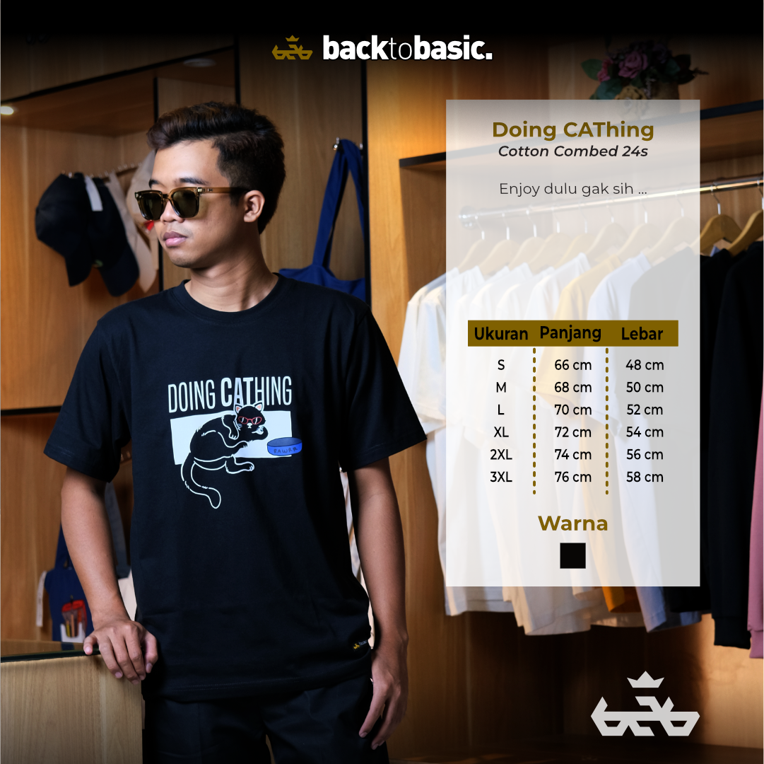 Kaos koleksi khusus dengan desain eksklusif bertema Doing Cathing, terinspirasi dari gaya hidup seekor kucing tenang, tak terburu-buru, tapi tetap penuh kendali dan elegan. Sebuah pengingat untuk menikmati jeda, tanpa kehilangan arah dan keanggunan diri. Terbuat dari katun premium yang lembut dan menyerap keringat, nyaman dipakai sehari-hari. Potongan reguler yang simpel namun tetap stylish, cocok untuk kamu yang hidup santai tapi tetap punya kelas.