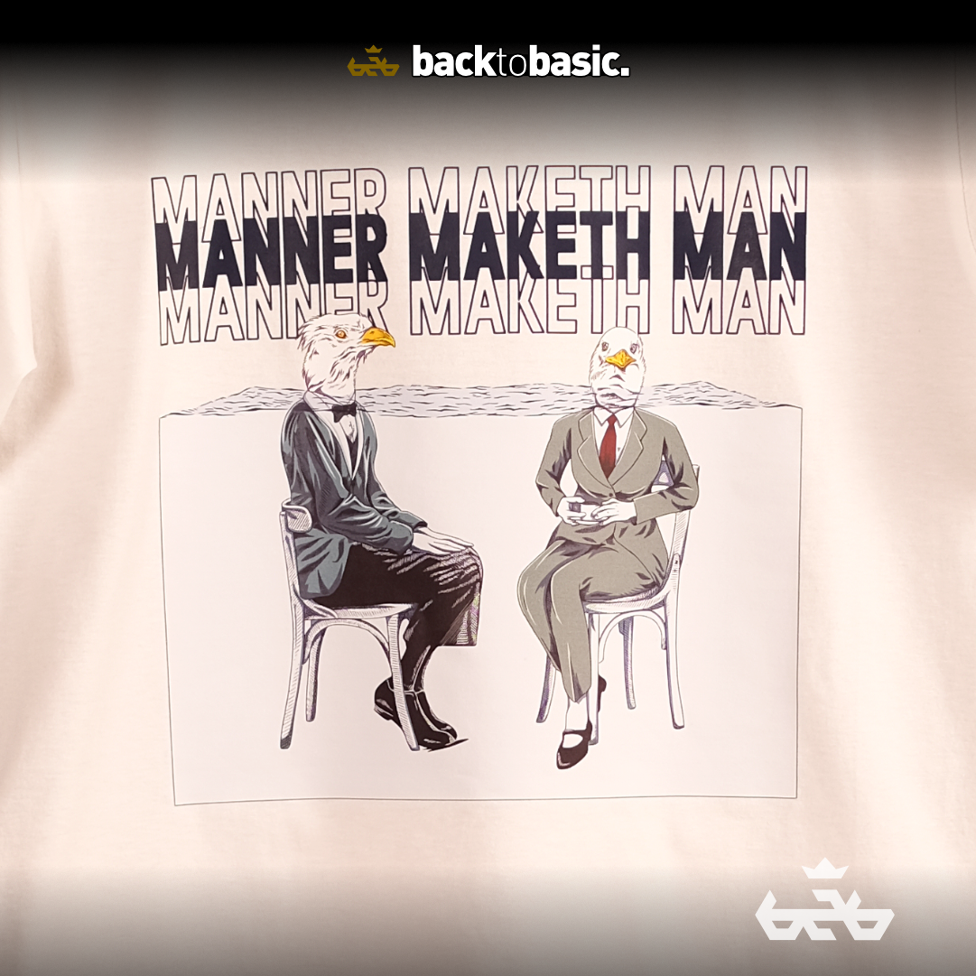 Kaos koleksi khusus dengan desain eksklusif berjudul Manner Maketh Man, mengangkat nilai kesopanan dan etika sebagai fondasi sejati dari karakter seorang pria. Terbuat dari katun premium yang lembut dan menyerap keringat, nyaman dipakai sehari-hari. Potongan reguler yang simpel namun tetap stylish, cocok untuk tampil berkelas dengan sikap yang berintegritas.