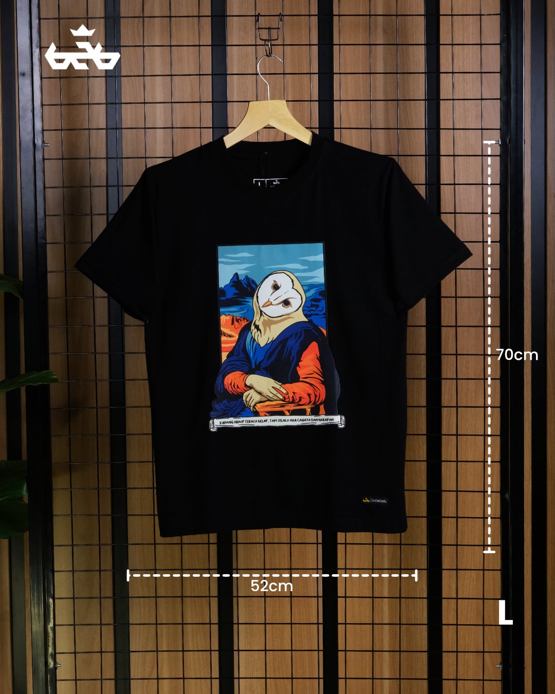 Kaos koleksi khusus dengan desain eksklusif berjudul Mona Owl reinterpretasi ikonik Mona Lisa yang unik dan penuh simbol. Burung hantu sebagai lambang kebijaksanaan berpadu dengan aura klasik Mona Lisa, menghadirkan perpaduan antara seni, misteri, dan ironi visual. Terbuat dari katun premium yang lembut dan menyerap keringat, nyaman dipakai sehari-hari. Potongan reguler yang simpel namun tetap stylish, cocok untuk kamu yang suka tampil beda dengan sentuhan intelektual.
