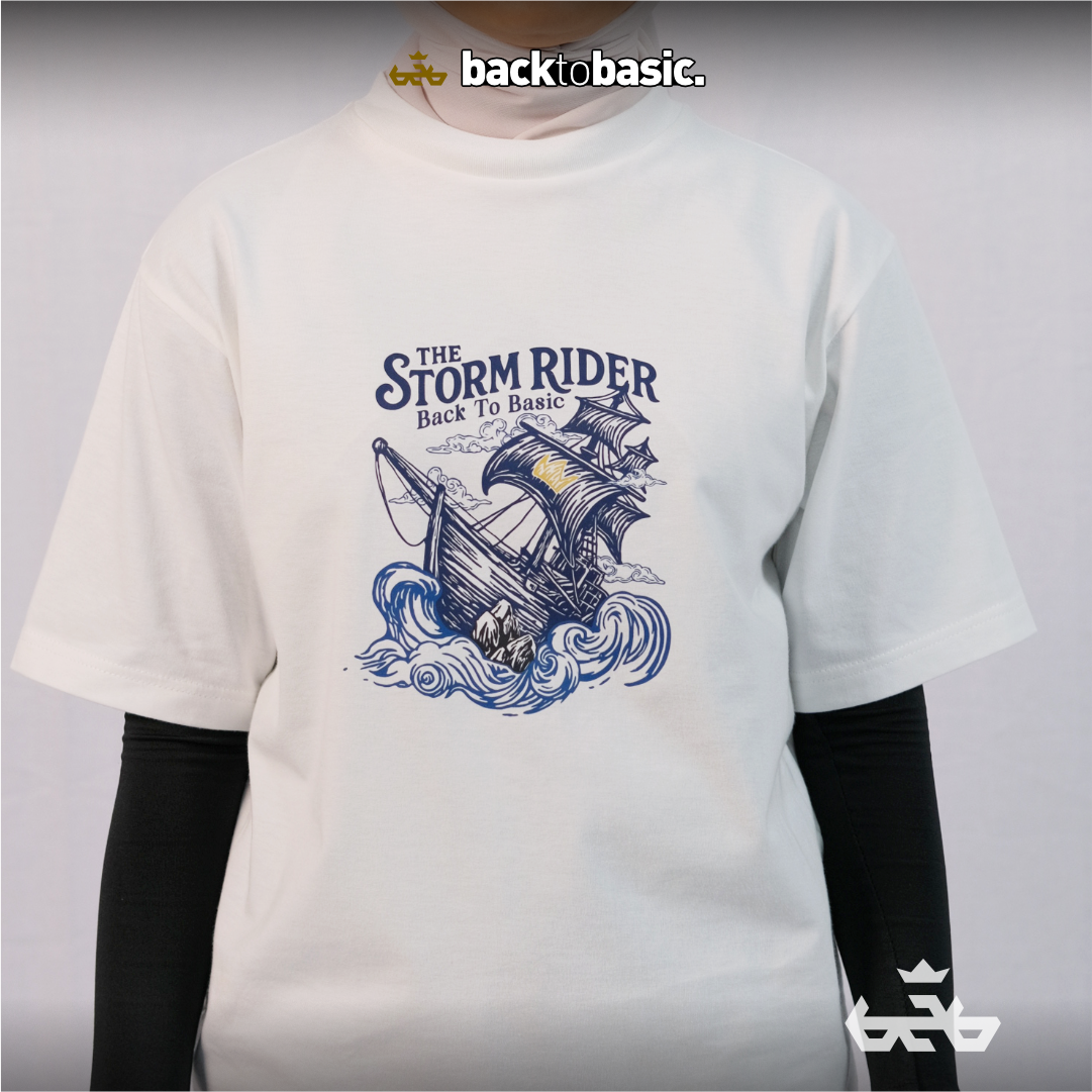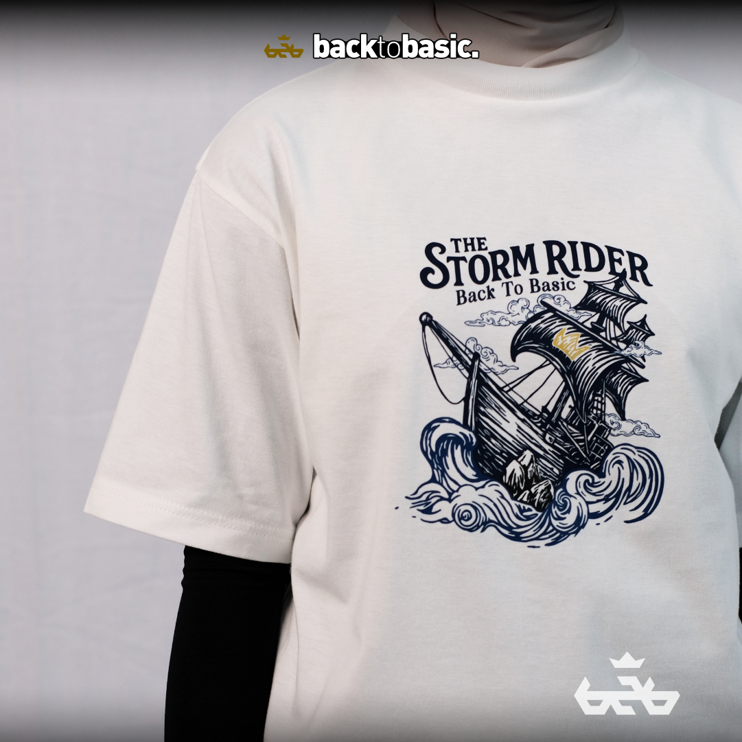 Desain Storm Rider menggambarkan perjalanan dalam ketidakpastian. Sebuah kapal tua, diterjang gelombang, namun terus melaju bukan karena kekuatannya, tapi karena tekad dan keyakinan bahwa setiap badai pun punya ujung. Di sanalah keikhlasan menjadi kompas, bukan perlawanan yang gegabah.