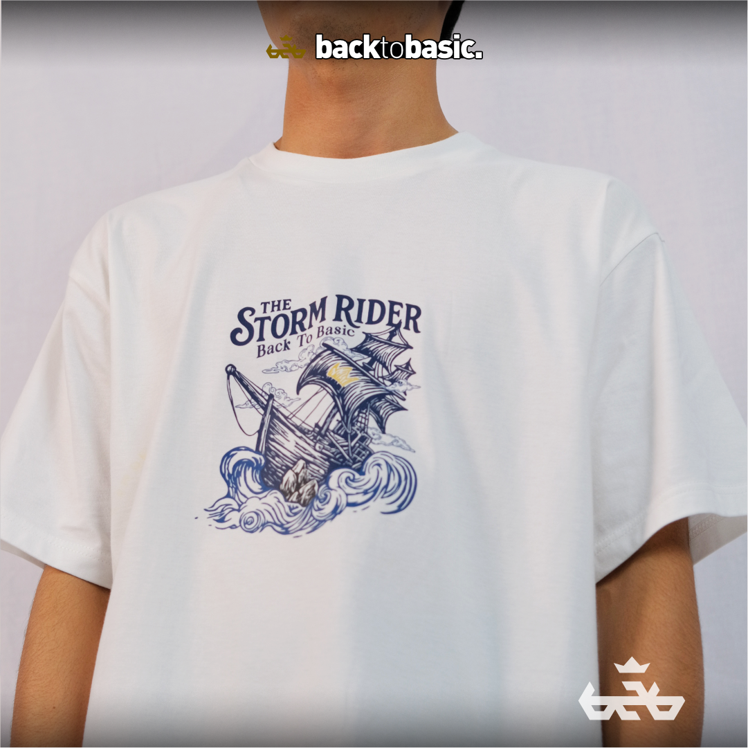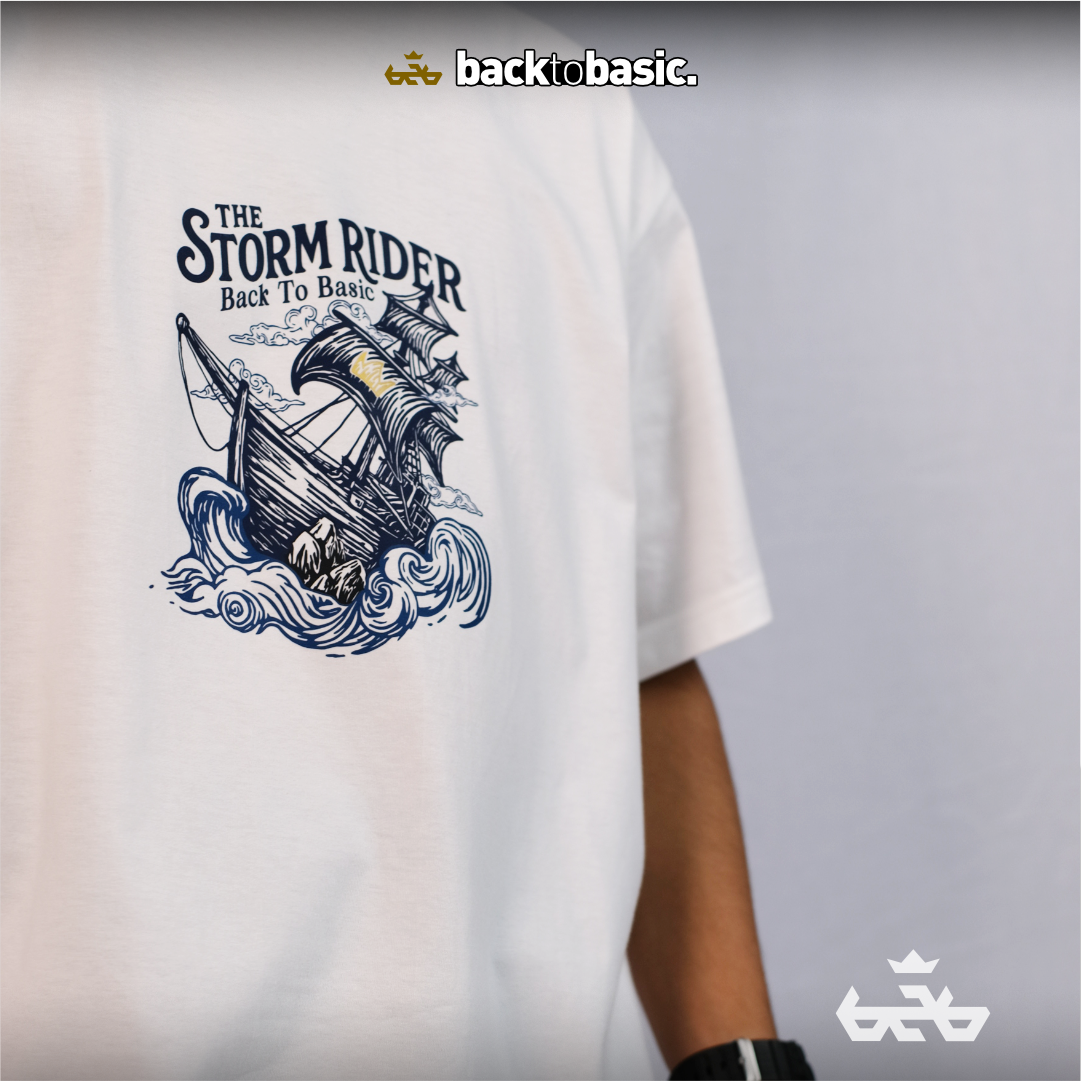 Desain Storm Rider menggambarkan perjalanan dalam ketidakpastian. Sebuah kapal tua, diterjang gelombang, namun terus melaju bukan karena kekuatannya, tapi karena tekad dan keyakinan bahwa setiap badai pun punya ujung. Di sanalah keikhlasan menjadi kompas, bukan perlawanan yang gegabah.
